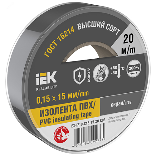 Изолента ПВХ 15 мм х 20 м IEK EX-IZ10-C15-15-20-K03, серый