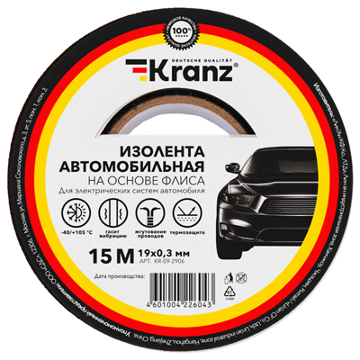Изолента автомобильная Kranz на основе флиса предназначена для жгутования проводов в моторном отсеке и салоне автомобиля.