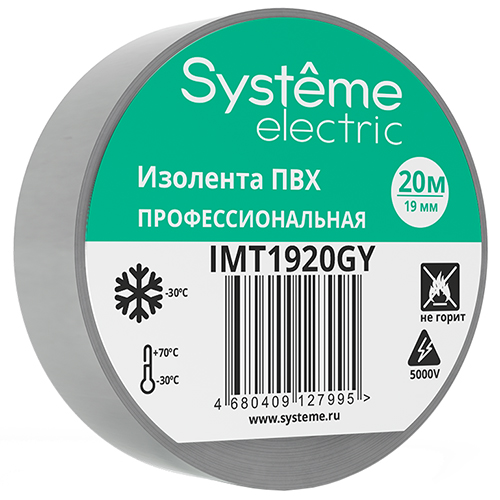 Изолента ПВХ 19 мм х 20 м Systeme Electric IMT1920GY, серый