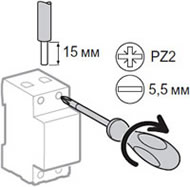 Жесткий медный кабель: 1 - 16 кв.мм. Момент затяжки: 2 Н*м. |