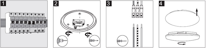- Зафиксируйте светильник на потолке с помощью саморезов в дюбелях. Избегайте прикосновения к светодиодам.