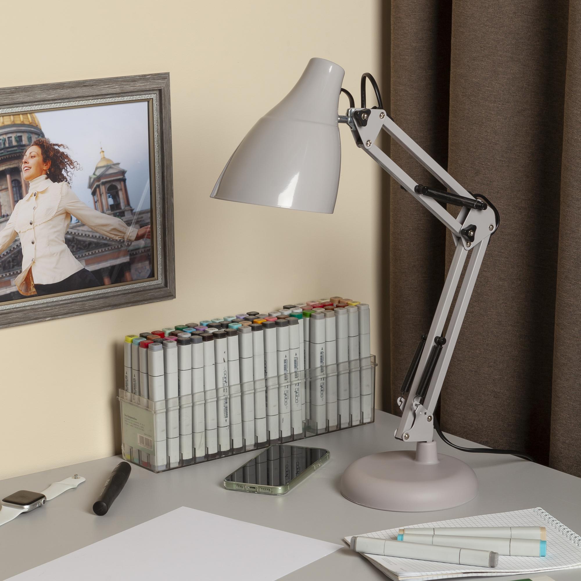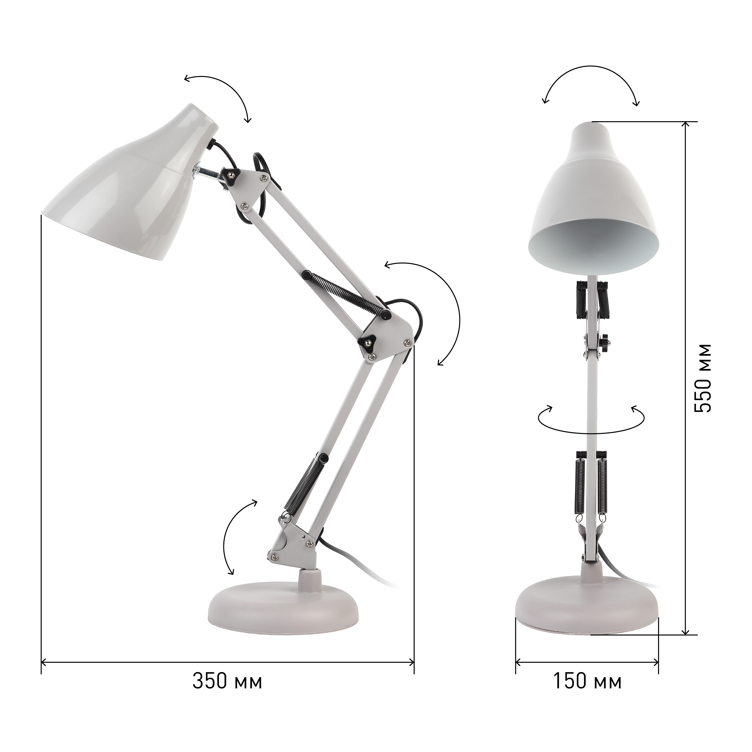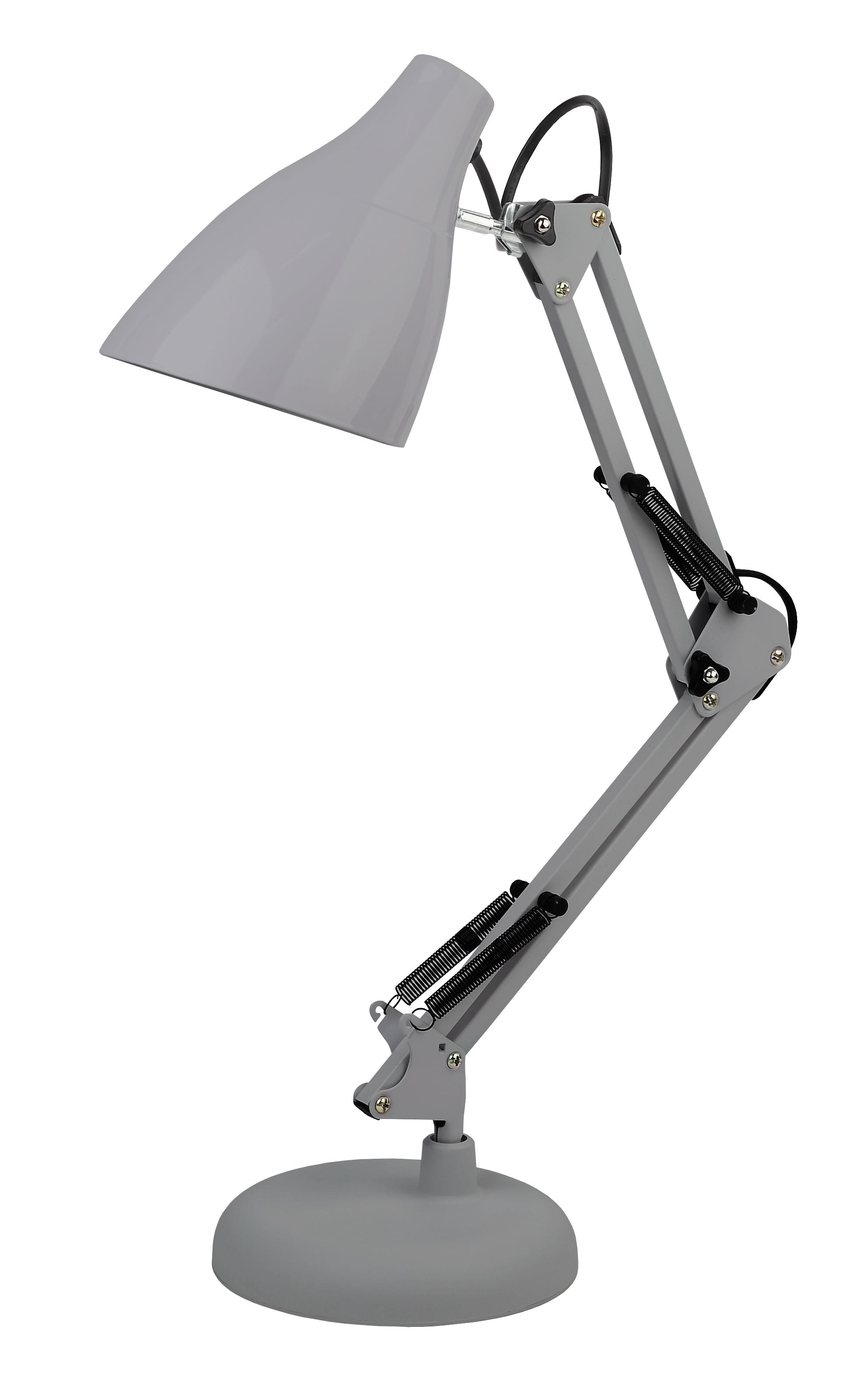 Настольный светильник ЭРА N-123-Е27-40W-GY трендового дизайна с классической конструкцией может использоваться с разными источниками света - лампой накаливания, компактной люминесцентной лампой (КЛЛ) или светодиодной (LED) лампой. Выключатель на проводе. Устойчивое основание. Высота плафона регулируется двухсекционной сгибающейся стойкой, направление света - поворотом и наклоном плафона в любом направлении.