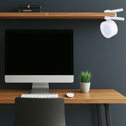 на стол (на опору с подставкой), клипсой к поверхности, а также на стену при помощи клейкой платформы.