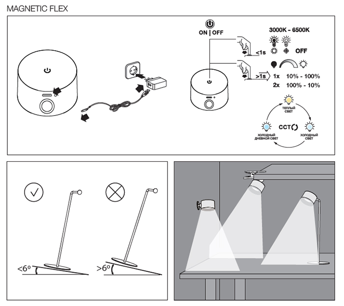 | Цветовая температура, К | 3000 / 4500 / 6500 |