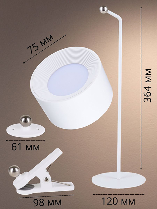 Светильник светодиодный аккумуляторный Desk Light MAGFX Tablet WT 1x6 RU Osram (2,2 Вт, 110 лм, 3000 / 4500 / 6500 К, подставка, прищепка, клейкая платформа, диммер), белый