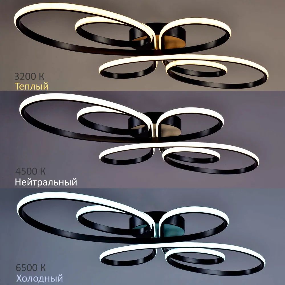 Светильник светодиодный потолочный "Россвет" РС23221 "Камертон" (156 Вт, 7000 лм, 3200 - 4500 - 6500 К, диммер) с пультом ДУ, черный