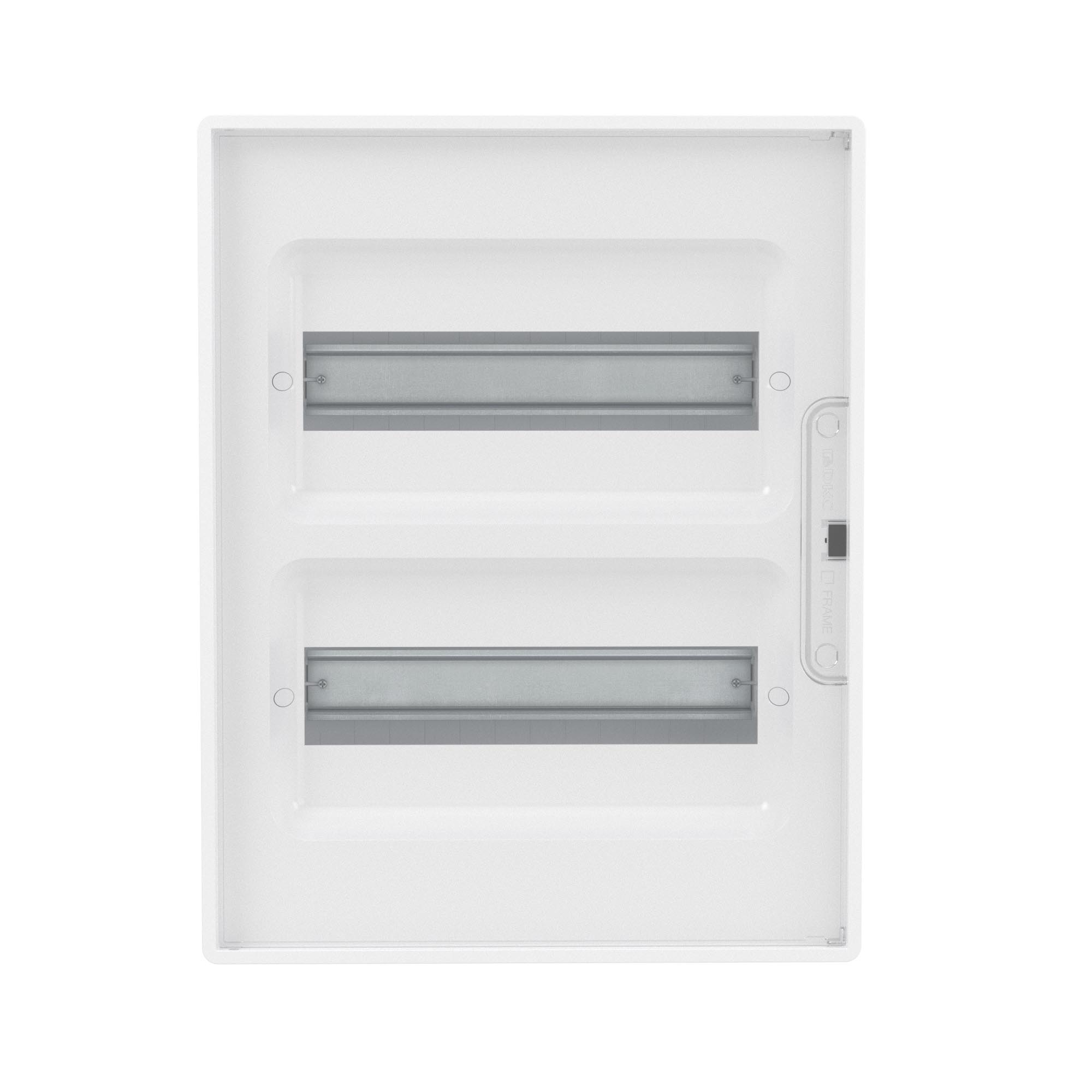 Щиток FRAME предназначен для монтажа в жилых и административных помещениях. Применяется для установки модульных устройств. Установка стандартных латунных шин возможна по всем стенкам корпуса щитка. Единый корпус шинодержателя можно разделить на сегменты, и использовать отдельно, под различные длины шин, в зависимости от задач. Симметричный корпус щитка позволяет открывать дверь слева или справа.Количество модулей - 24. Цвет корпуса белый, цвет двери - прозрачная, ширина - 311,6 мм, высота - 398,