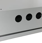 3 окна для ввода проводов на нижней поверхности корпуса. Гофрированные сальники для ввода кабеля в комплекте. |