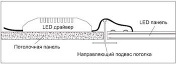 - При накладном и подвесном монтаже драйвер монтируется отдельно в межпотолочном пространстве или нише.