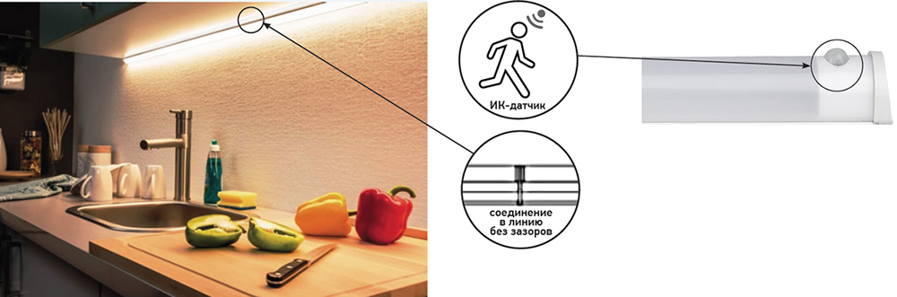 Линейный светодиодный светильник "Эра" LLED-02 оборудован датчиком движения.