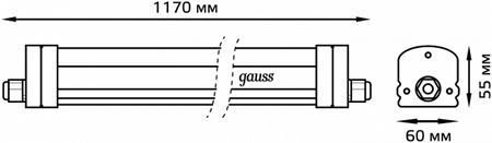 Светильник светодиодный линейный Gauss 843425236 Universal (36 Вт, 3600 лм, 4000 К, IP65), 1170 х 60 х 55 мм