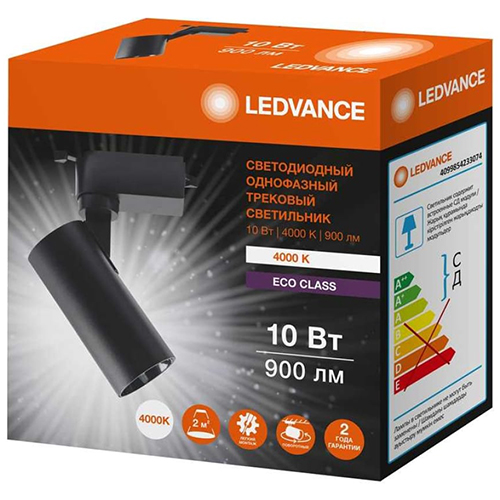 Светильник светодиодный трековый однофазный Ledvance ECO TRACKSP 1PH 10W 840 BKRD 40X1 RU LEDV (10 Вт, 900 лм, 4000 К), черный